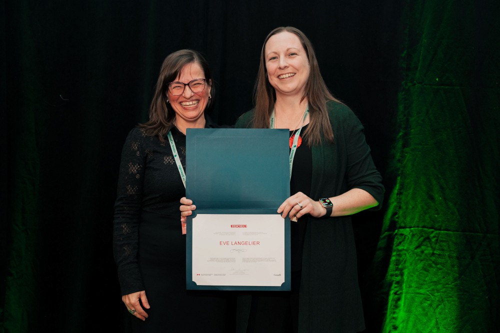 Pendant la conférence, le CRSNG, représenté par Valérie Harbour, directrice adjointe aux subventions de recherche, a rendu hommage à Eve Langelier et à son équipe.