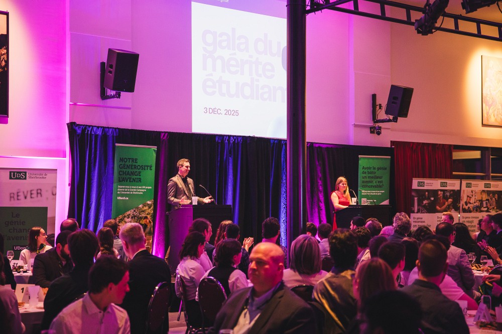 Le 3 décembre dernier, la grande famille de la Faculté de génie s’est réunie à l’occasion du Gala du mérite étudiant pour célébrer ce qui fait sa force : une communauté étudiante, professorale et professionnelle soudée, appuyée par des donateurs et donatrices engagés à bâtir un milieu innovant, inclusif et porteur d’avenir.