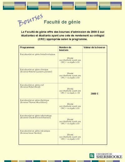 Bourses d'admission