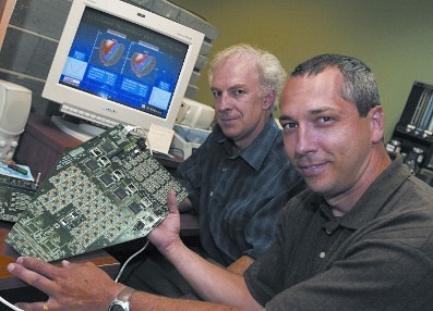 Dr. Roger Lecomte, professeur titulaire, médecine nucléaire et radiobiologie (gauche), et Dr. Réjean Fontaine, professeur agrégé au Département de génie électrique et de génie informatique et titulaire de la chaire de recherche en conception d'appareillage d'imagerie médicale (droite).