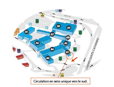 Circulation à sens unique près du bâtiment A5