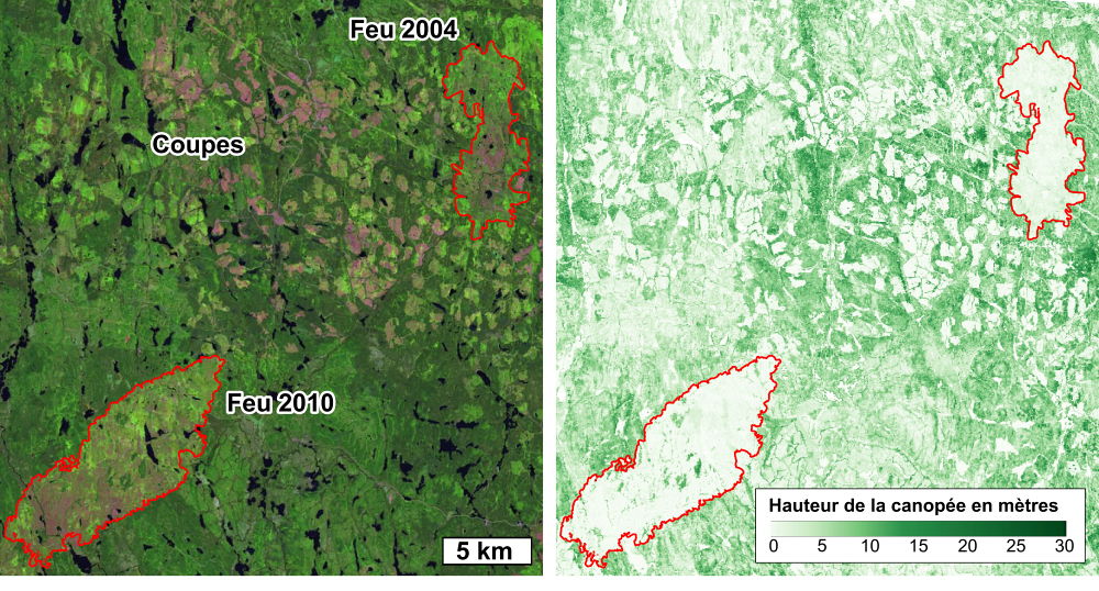 « On compte ici au Québec des millions d’hectares de forêts et des millions d’hectares de forêts perturbées. Essayer de faire du suivi, du monitoring avec des données terrain, c’est très complexe, coûteux, et forcément très localisé. La télédétection nous permet de faire un suivi beaucoup plus efficace », explique Victor Danneyrolles.