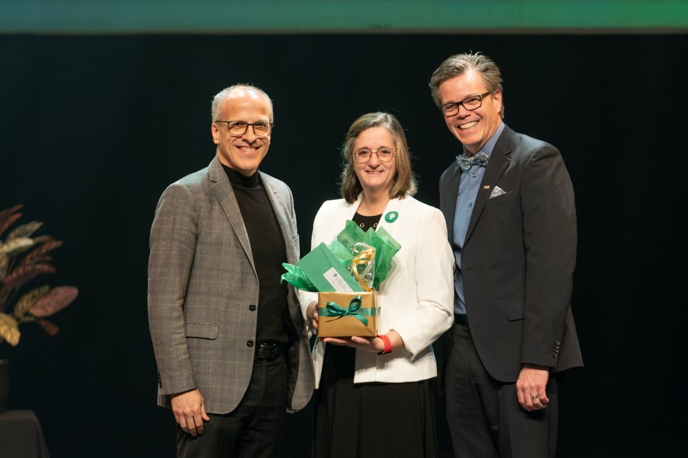 Ce grand rituel de reconnaissance s’est ouvert cette année sur un numéro de slam créé sur mesure et interprété par Caroline Grondin, une employée de l’UdeS. Inspiré de la nouvelle marque employeur de l’université, le poème rythmé célébrait la diversité des talents et des personnalités dans une performance touchante qui a décroché des sourires à quelques reprises.