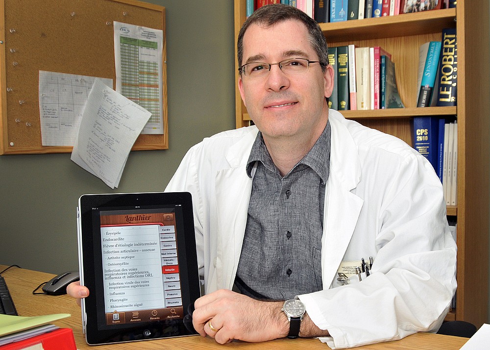 «L'avantage de l'application électronique, c'est que les mises à jour peuvent se faire de façon beaucoup plus rapide, mentionne l'auteur, Luc Lanthier, professeur à l'UdeS et médecin interniste au Centre hospitalier universitaire de Sherbrooke. Nous pourrons dorénavant offrir une mise à jour approximativement tous les quatre mois, par rapport aux trois ans de la version papier.»