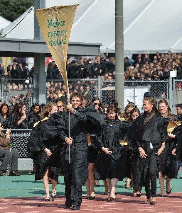 La cérémonie 2013 de la Collation des grades s’est déroulée le 21 septembre dernier sous un soleil radieux. Pour l’événement, les parents et amis des diplômés de la Faculté de médecine et des sciences de la santé (FMSS) se sont réunis pour célébrer la réussite. Plus de 400 diplômés ont défilé avec grande fierté sur scène pour recevoir leur diplôme des mains du doyen. L’émotion était palpable. Mathieu Viau, diplômé porte-parole de la Faculté a bien su résumer ce que ce moment représente pour lui et ses collègues : « Cette étape que nous venons de franchir est l’une des plus importantes de notre vie » a-t-il exprimé avec une pointe de nostalgie dans la voix.