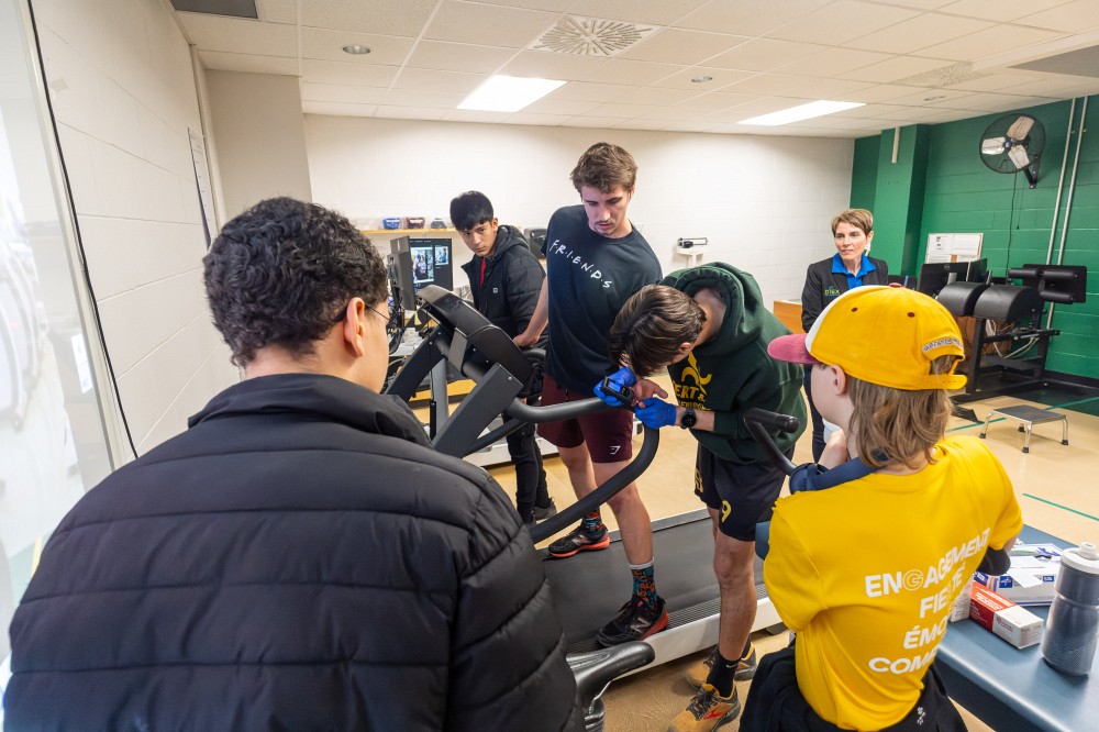 Des jeunes aux yeux illuminés étaient au rendez-vous devant les diverses démonstrations proposées! En effet, les groupes ont pu vivre quatre types d’activités afin de découvrir l’étendue des recherches qui sont menées ici à la FASAP, et ce, en une après-midi. Par ailleurs, chacune de ces activités était animée par notre communauté étudiante aux cycles supérieurs (maîtrise, doctorat). Plusieurs belles discussions ont eu lieu. Se tenant au Centre sportif de l’Université de Sherbrooke ainsi que dans nos locaux facultaires, les activités d’observation interactives proposées leur ont permis d’en découvrir davantage sur les zones d’entraînement et la mesure du stress physiologique, sur l’influence de l’hypohydratation sur la performance, sur la rétention des nouveaux apprentissages par la neurostimulation ainsi que sur la performance mentale par le contrôle de la respiration.