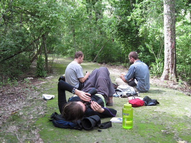 En vue de prévenir de tels impacts, Sabrina Plante, étudiante à la maîtrise en biologie avec cheminement en recherche en écologie, essaie de mieux cerner les stratégies de recherche de nourriture des singes hurleurs dans la réserve de la biosphère de Calakmul, dans l’État de Campeche. Elle y a séjourné trois mois l’automne dernier, et s’y est rendue la semaine dernière pour un second voyage de deux mois et demi. Elle mène son projet de mémoire en compagnie de deux étudiants du baccalauréat en écologie de l’UdeS, Vincent Cameron Trudel et Lara Ouellette-Plante, ainsi que d’un étudiant mexicain, Uriel.