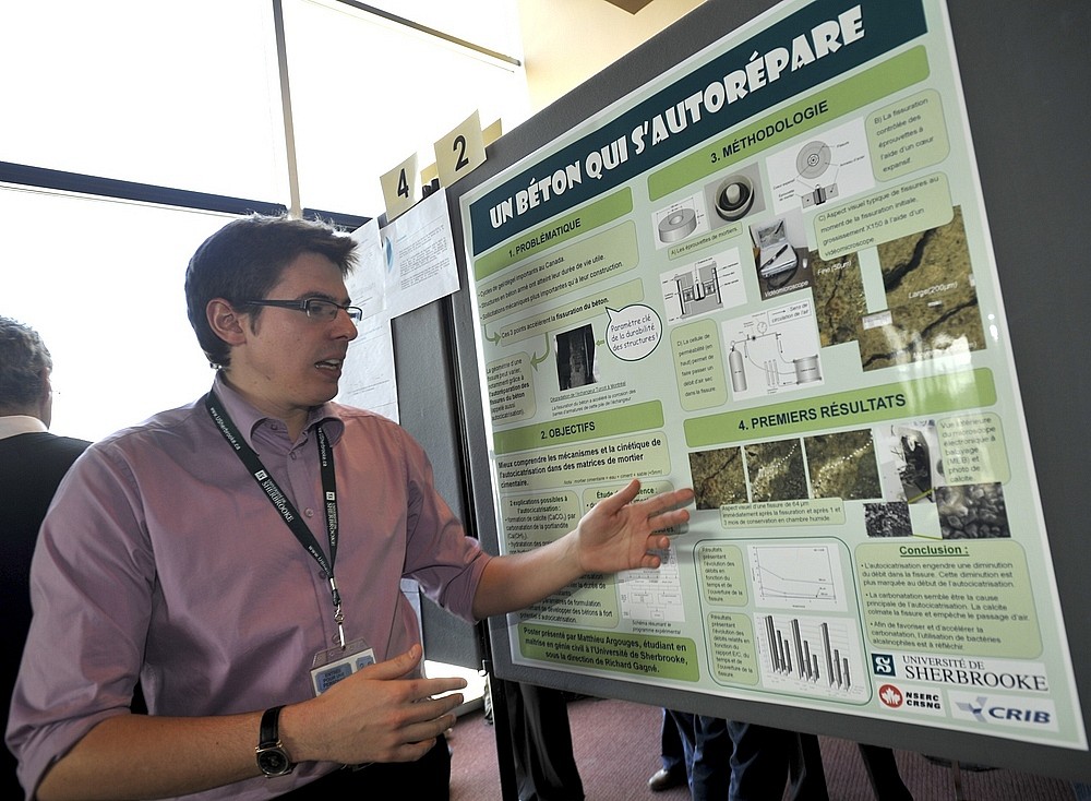 Les Québécois le savent : notre climat varie énormément au cours d’une même année. Le gel et le dégel, l'âge avancé des structures et l'augmentation du trafic contribuent à l'apparition de fissures sur les structures de béton qui nous entourent et nous supportent. Matthieu Argouges, étudiant à la maîtrise en génie civil, s'intéresse à l'autoréparation du béton.
