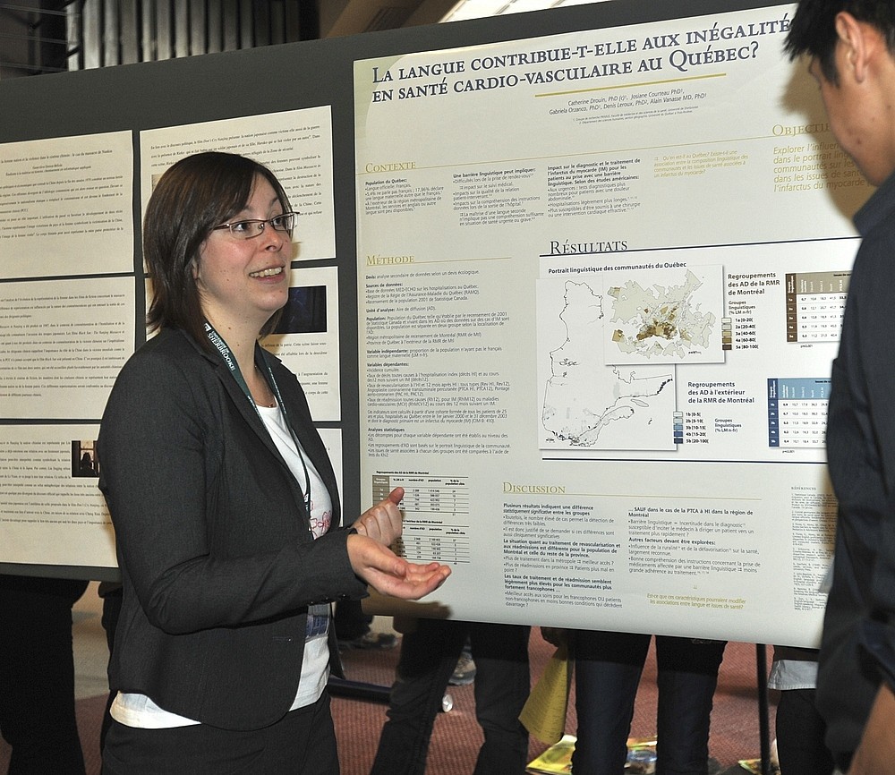 Catherine Drouin, étudiante en sciences de la santé communautaire, s'est demandé : «Existe-t-il une différence entre l'état de santé des communautés francophone et anglophone?» Les résultats des sondages effectués au Canada ont révélé que les groupes linguistiques minoritaires ont l’impression d'avoir un moins bon accès aux services. Cette perception, si elle est considérée comme vraie, a-t-elle un réel impact sur leur santé?