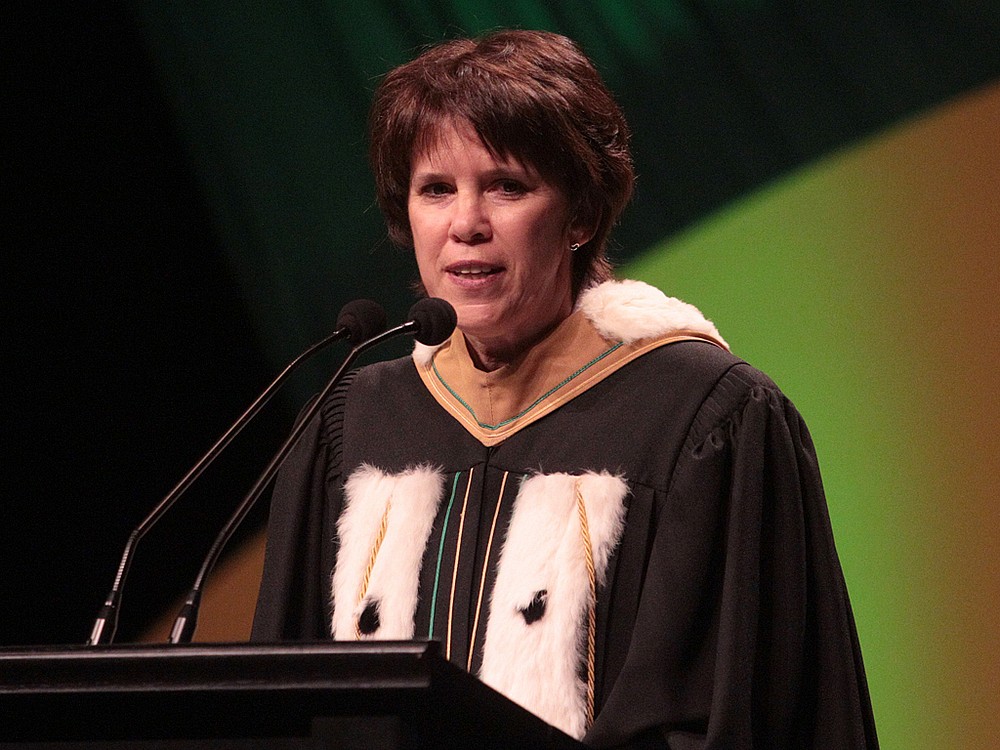 Colette Deaudelin, doyenne de la Faculté d’éducation, a parlé de la mission à l’échelle planétaire de ses diplômées et diplômés : «Réalisez-vous que nos finissants passeront plus de temps avec les jeunes de 5 à 16 ans que leurs propres parents?»
