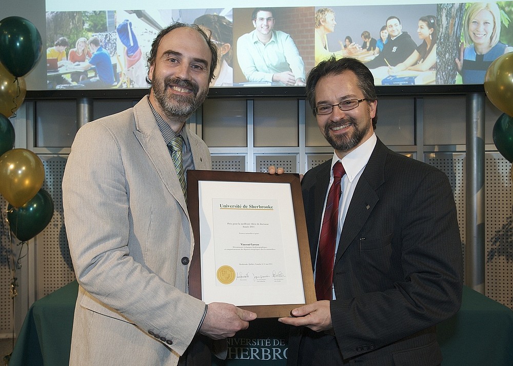 Les auteurs de trois thèses exceptionnelles, dont un biologiste de la Faculté des sciences, ont été honorés par l'Université de Sherbrooke, le 11 mai, dans le cadre du Congrès de l'Association francophone pour le savoir (ACFAS).