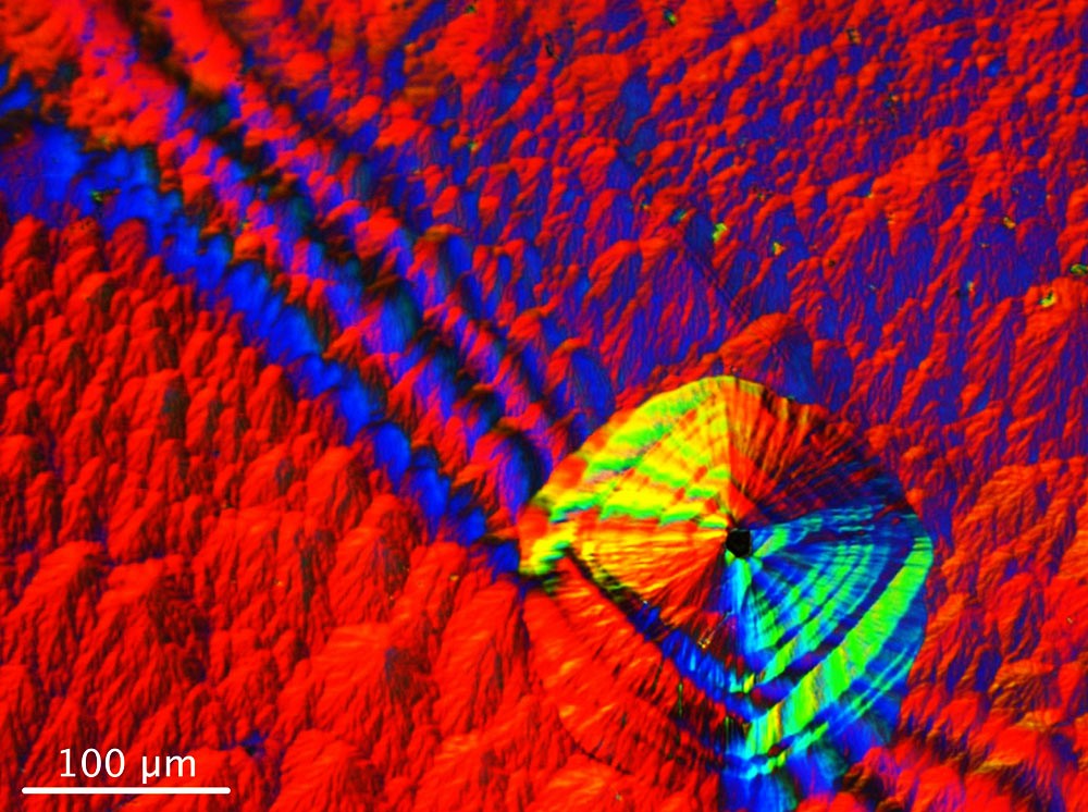 David Roy-Guay, lui, propose une image issue de la surface d'un diamant. «Nous sommes à la surface d'un diamant "né" en laboratoire, constitué de carbone, comme sa version naturelle. Il a ici été bombardé d'atomes d'azote afin de créer des imperfections avec une précision inégalée… En fait, ce bombardement "fait sauter" des atomes de carbone, créant des trous près desquels l'azote vient se loger. Ce phénomène génère des "centres colorés" émettant de la lumière dans le spectre du visible. L'informatique quantique, entre autres, bénéficie de ces travaux», explique-t-il.