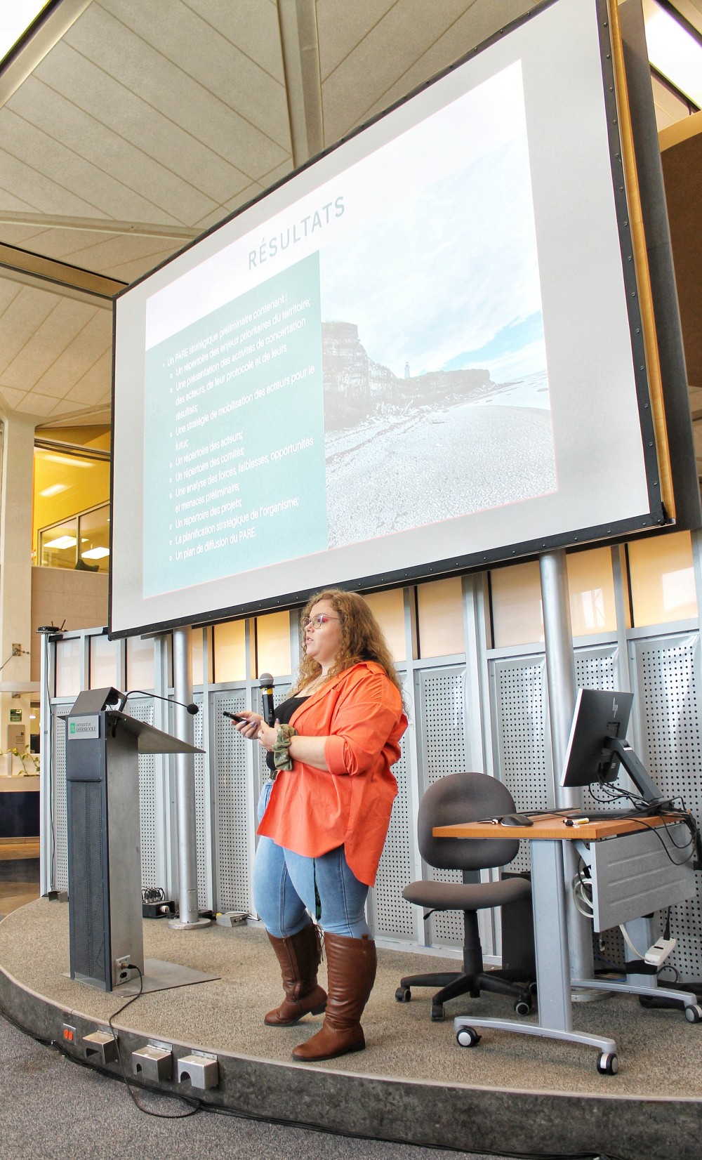 Éliane Légo présente son projet de fin d'études de la maîtrise en gestion systémique des milieux naturels.