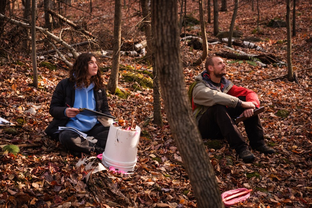 Rosalie Léonard et Patrice Bourgault, tous deux coordonnateurs des travaux pratiques au baccalauréat en écologie, estiment qu’enseigner les rudiments de la conservation sur un campus vert entouré de milieux naturels est une chance inouïe.