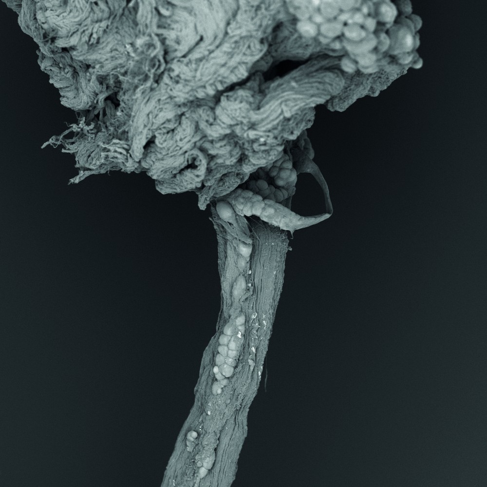 Cette photographie monochrome d’une élégante simplicité ne représente pas une corde qui vient de se rompre à force d’avoir trop tiré dessus, mais bien un nerf sciatique de souris qui a été sectionné. Comme quoi la beauté peut se retrouver dans les situations les plus inattendues.