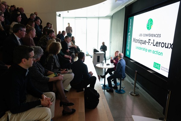 Monique F. Leroux était de passage à l’UdeS le 19 mars pour y lancer la première conférence d’une série autour du leadership en action qu’elle et son conjoint, Marc Leroux, ont appuyée par leur engagement philanthropique.
