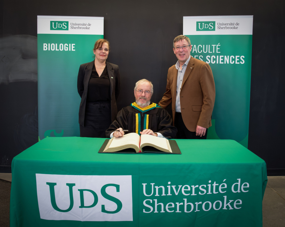 Après la signature du livre d’or de l’Université et la remise du diplôme officiel d’éméritat au professeur Festa-Bianchet par le recteur, professeur Jean-Pierre Perreault, en compagnie de la professeure Nancy Dumais, vice-doyenne aux études de la Faculté des sciences, la cérémonie a fait place à une surprise qui a ravi les oreilles du nouveau professeur émérite et des convives rassemblés pour lui rendre hommage.