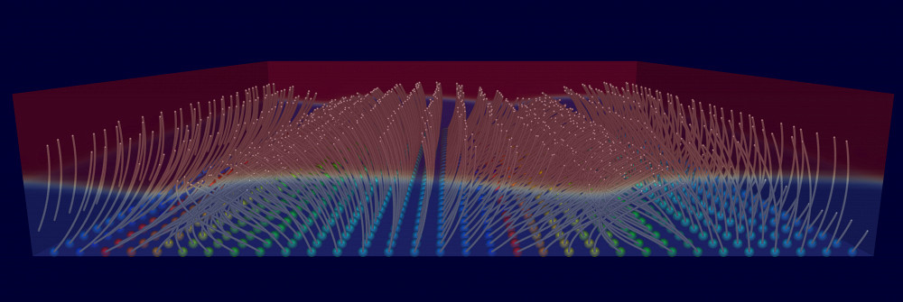 Cette image est en fait le résultat d’une simulation numérique et illustre le mouvement des cils qui recouvrent nos organes interne. Réalisée par l’étudiant en génie Sylvain Château et ses collègues, cette représentation colorée figure parmi les 20 finalistes du concours La preuve par l’image.