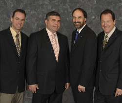 Sur la photo, le directeur du groupe de recherche sur la parole et l'audio de l'UdeS, Roch Lefebvre, le vice-président Recherche et développement chez VoiceAge, Redwan Salami, le vice-recteur à la recherche de l'UdeS, Jacques Beauvais, et le vice-président exécutif chez Sipro Lab Telecom, Sylvain Desjardins.