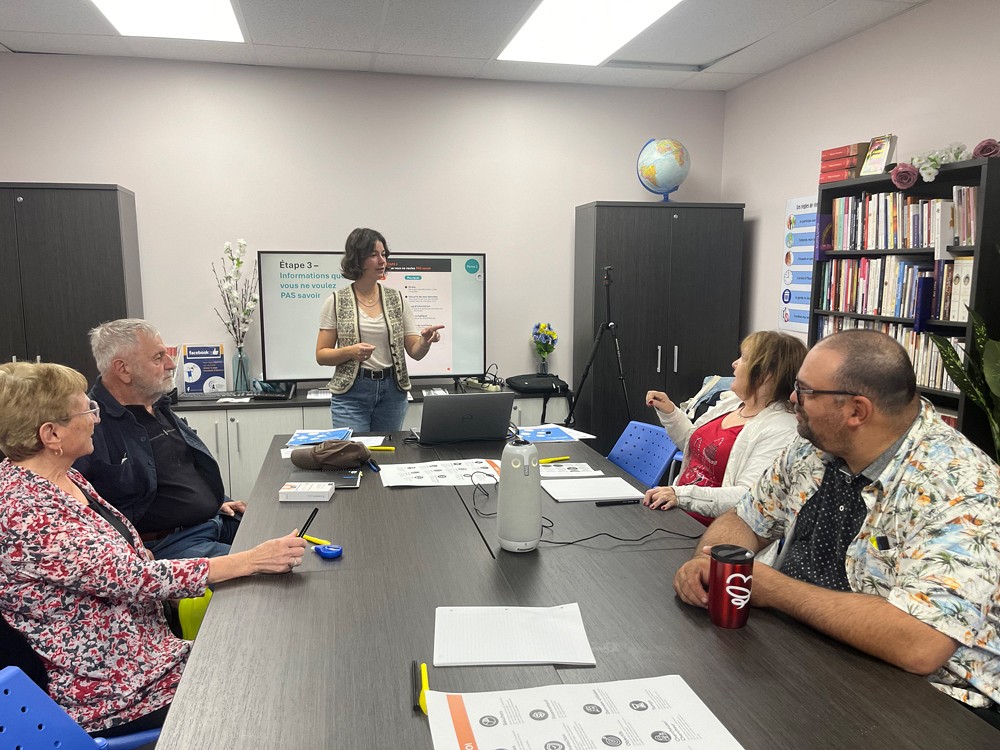 Ainsi, Mme Poulin et Mme Céline Leclerc, une enseignante en alphabétisation depuis 25 ans très investie dans le projet, ont posé un regard aguerri sur les outils développés par les chercheurs et chercheuses. « On a simplifié des mots, reformulé des phrases, misé sur l'utilisation d'images, de pictogrammes, de vidéos, pour expliquer les concepts, pour que les gens puissent bien comprendre et visualiser l'information. On a ensuite impliqué nos apprenants pour valider leur compréhension. Quand ils ne comprennent pas, ils nous le disent clairement que c'est du « chinois » pour eux », ajoute Mme Poulin.