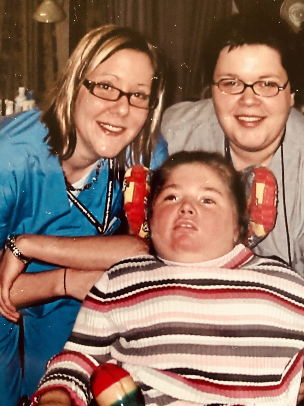 Infirmière au CHU Sainte-Justine de 2003 à 2010, Judith s'est liée d'amitié avec ses collègues, comme Marie-Pierre qui pose ici avec elle, autant qu'avec certains familles qu'elle a croisées. C'est le cas de celle de Maude, la patiente sur cette photo.