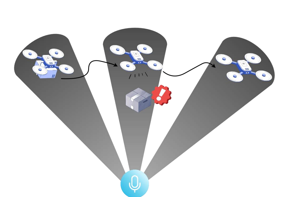 L’interaction avec la voix pour contrôler un drone est un défi majeur en raison du bruit des hélices, qui vient masquer les sources sonores. Une interaction par la voix pourrait permettre, entre autres, de communiquer avec un opérateur distant, ou encore pour des missions de sauvetage où une personne en détresse peut tenter d’attirer l’attention du drone avec la voix.