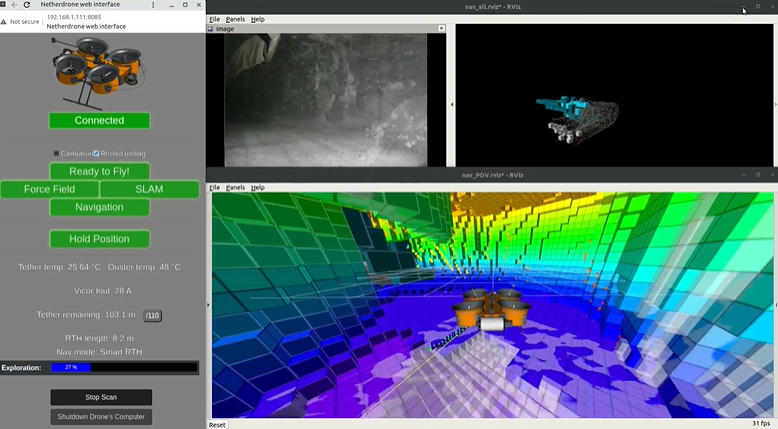 Cependant, ils ont des limites, comme une grande taille, le positionnement difficile du lidar sur le drone, le temps de vol limité pour les inspections visuelles détaillées et la communication souterraine peu fiable.L’équipe de projet a développé un drone compact avec liaison filaire appelé le NetherDrone, spécialement conçu pour les chantiers souterrains.