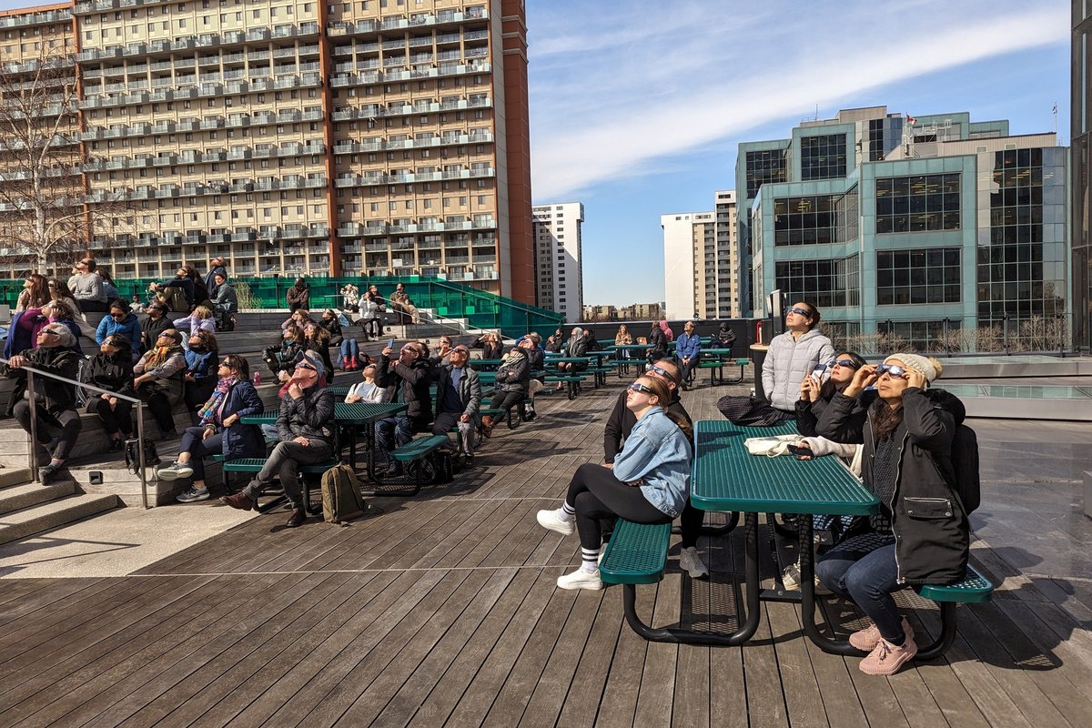Les astres étaient parfaitement alignés le 8 avril 2024 au Campus principal de l’UdeS. En plein cœur de la trajectoire de l’éclipse solaire totale, le ciel de l'Université de Sherbrooke s’est obscurci pour faire place à un spectacle astronomique rarissime, au grand bonheur de la communauté universitaire.