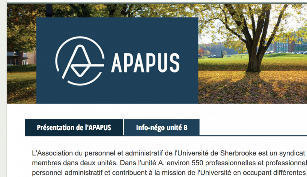 L’APAPUS adopte une nouvelle signature graphique en plus de mettre à jour certains outils de communications. Son site web vient d'être amélioré et bonifié de nouveaux contenus. Par exemple deux nouvelles foires aux questions sont proposées afin d'informer les membres des deux unités sur leurs droits. Également, des capsules vidéo, notamment produites par la Fédération du personnel professionnel des universités et de la recherche peuvent être visionnées.