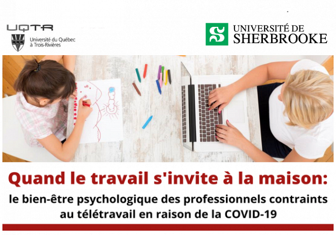 Cette étude est réalisée par Stéphanie Austin, Ph.D., professeure et chercheure à l'École de gestion de l'Université du Québec à Trois-Rivières,Dominique Mailhot, candidate au MBA et déléguée syndicale au Syndicat du personnel professionnel de l'UQTR ainsi que Julie Levesque-Côté, Ph.D., professeure et chercheure au département de psychologie de l'Université de Sherbrooke (UdeS). Pour toutes questions concernant la recherche, veuillez communiquer avec Julie Levesque-Côté par courriel (julie.levesque-cote@usherbrooke.ca).