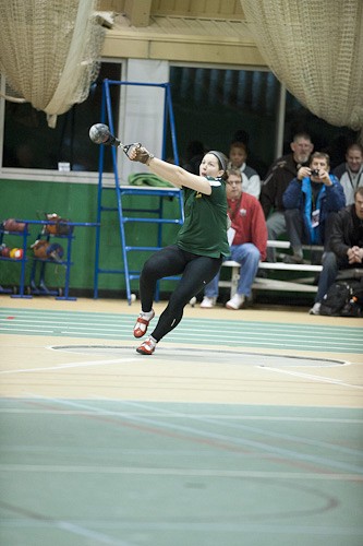 L'étudiante en kinésiologie a projeté son marteau à 17,61 mètres à son troisième essai, ce qui lui a permis temporairement de s'emparer du deuxième rang, derrière Heather Steacy, de l'Université Lethbridge. Taryn Suttie, de l'Université de la Saskatchewan, a cependant surpris en ronde finale, enregistrant un lancer de 19,55 mètres qui lui a valu la médaille d'or. Steacy est demeurée deuxième avec une marque de 19,08 mètres.