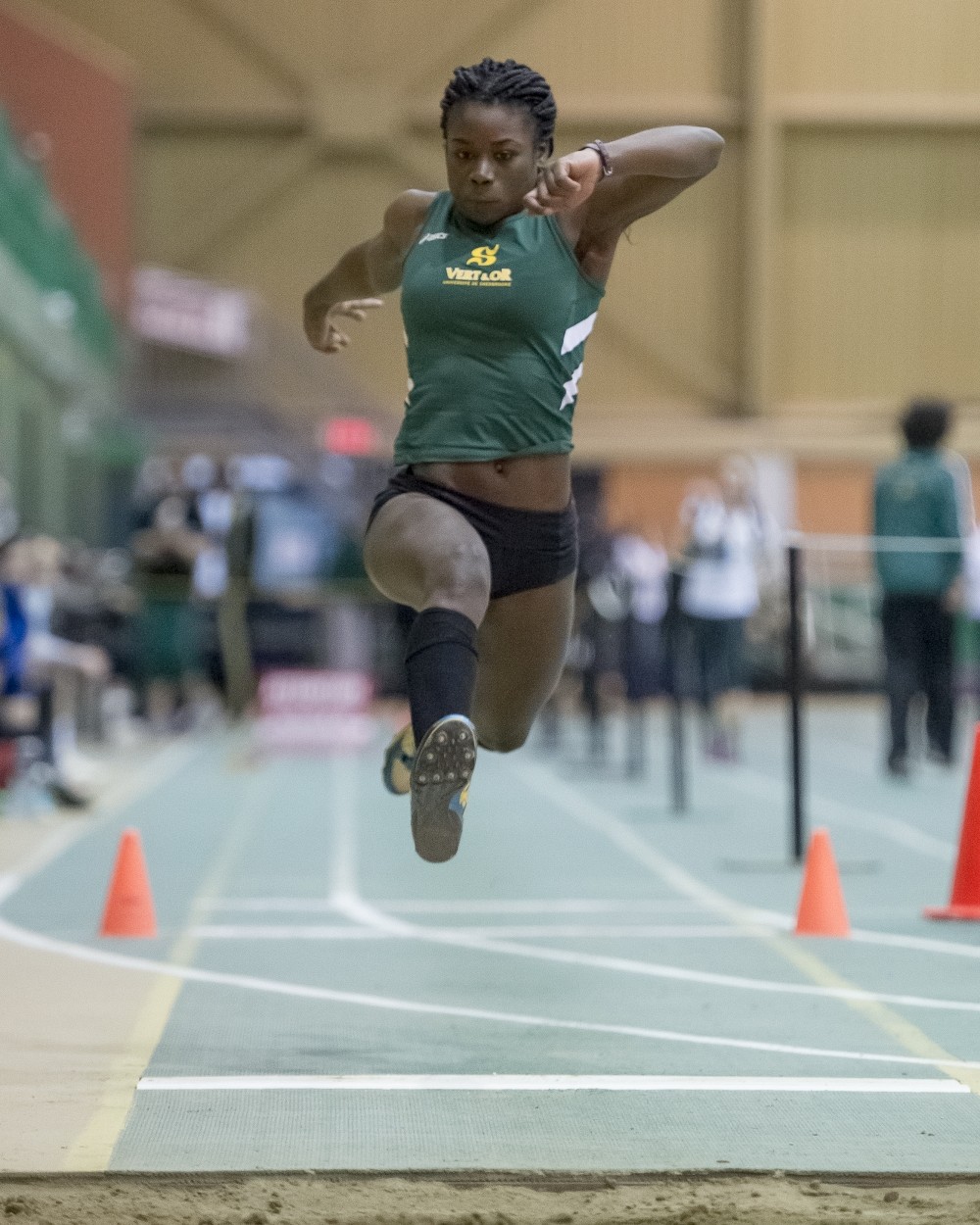 Frédérique Djoussou-Lorng a ainsi mérité deux deuxièmes places au triple saut et au 60 m, en vertu d’un bond de 11,37 m et d’un sprint de 7 s 75. Ses coéquipières du Vert & Or Audrey Bonneau et Éloïse Rheault monopolisaient pour leur part les deux meilleures positions sur le podium à la finale du saut en longueur, grâce à des sauts respectifs de 5,60 m et 5,57 m.