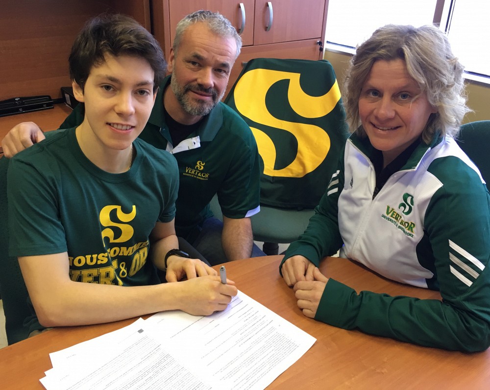 Les entraîneurs du Vert & Or Luc Lafrance et Jean-François Gagné viennent de réaliser un grand coup sur le plan du recrutement avec la confirmation de la venue du talentueux coureur de fond Félix Lapointe-Pilote. Le jeune homme natif de Jonquière, qui a aidé les Volontaires du Cégep de Sherbrooke à remporter deux championnats collégiaux de cross-country consécutifs, était au secrétariat du Service du sport et de l’activité physique de l'Université de Sherbrooke hier, pour signer sa lettre d'intention à la faveur du Vert & Or.