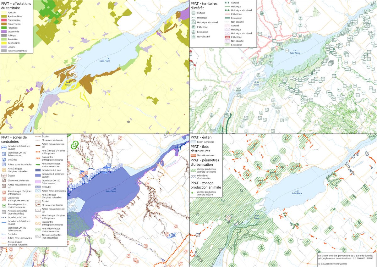 Les données géographiques du Portrait provincial en aménagement du territoire (PPAT) sont une représentation standardisée du contenu des schémas d’aménagement (SAD) et des règlements de contrôle intérimaire (RCI) en vigueur des MRC et villes à compétence de MRC. Ces données sont regroupées en sept grandes thématiques : affectations du territoire; périmètres d’urbanisation; zones de contraintes à l’occupation du territoire; territoires d’intérêt; îlots déstructurés; éolien; zonage de production animale. La cartographie des données peut être consultée sur la banque de données Territoires et les données peuvent être téléchargées sur Géoindex.