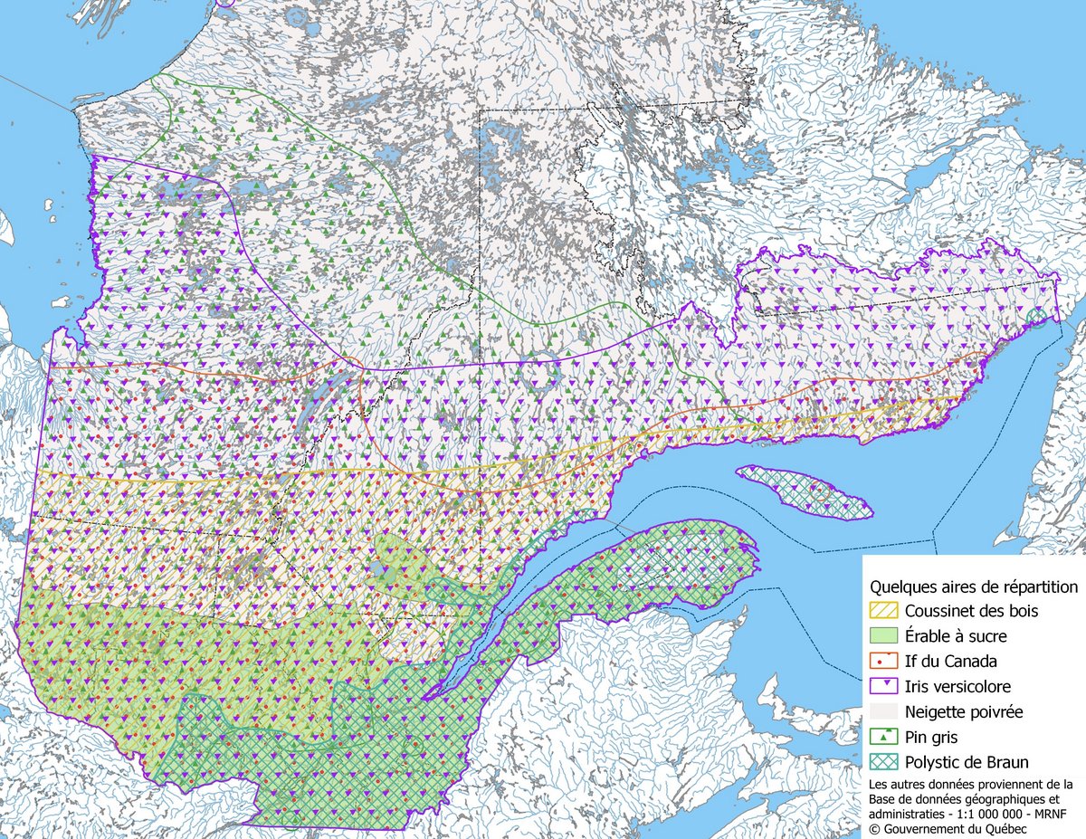Aire de répartition des espèces de la Petite flore forestière du Québec - MRNF