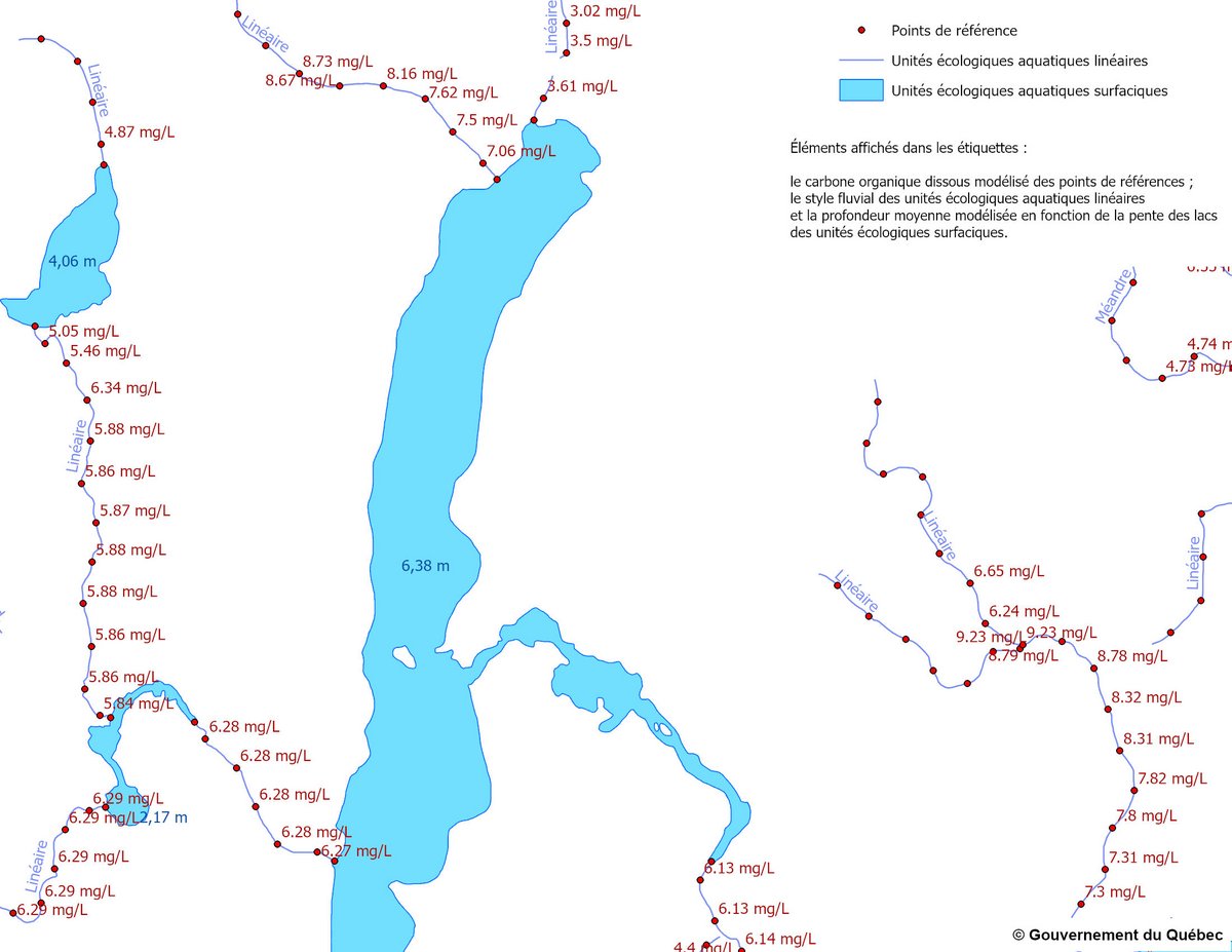 Le CRHQ est un outil cartographique qui regroupe des informations et connaissances écologiques sur les écosystèmes aquatiques du territoire québécois en support à la prise de décision. Il fournit un cadre hiérarchique de cartographie et de caractérisation des écosystèmes aquatiques basé sur les processus qui gouvernent leur fonctionnement. Il fournit tout d’abord les unités écologiques aquatiques (UEA) qui correspondent à des portions du réseau hydrographique de surface qui présentent une certaine homogénéité dans leurs caractéristiques physiques qui conditionnent les biotopes aquatiques. Le CRHQ comprend aussi des informations sur l’hydro-géomorphologie, l’hydraulique, la physico-chimie et l’hydrologie des écosystèmes aquatiques qui sont associés à des points de référence distribués sur le réseau hydrographique.