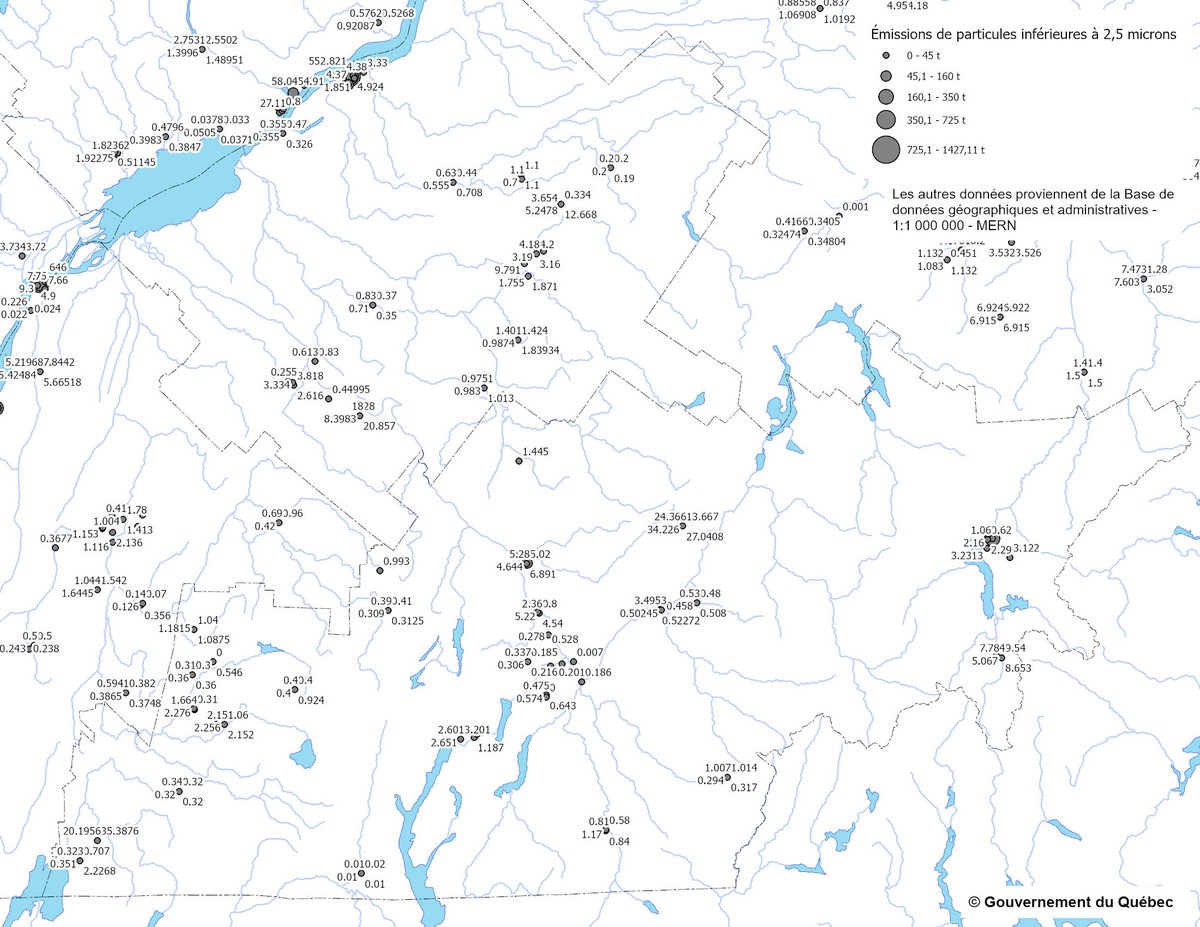 Informations géoréférencées sur plus de 200 sites industriels et 300 effluents industriels. Il contient des données calculées sur une base annuelle qui concernent la conformité et les caractéristiques des rejets d'eaux usées pour les mines, les raffineries de pétrole, les usines de pâtes et papiers, de ciment, de chaux et de boulettage et autres industries assujetties au Programme de réduction des rejets industriels.