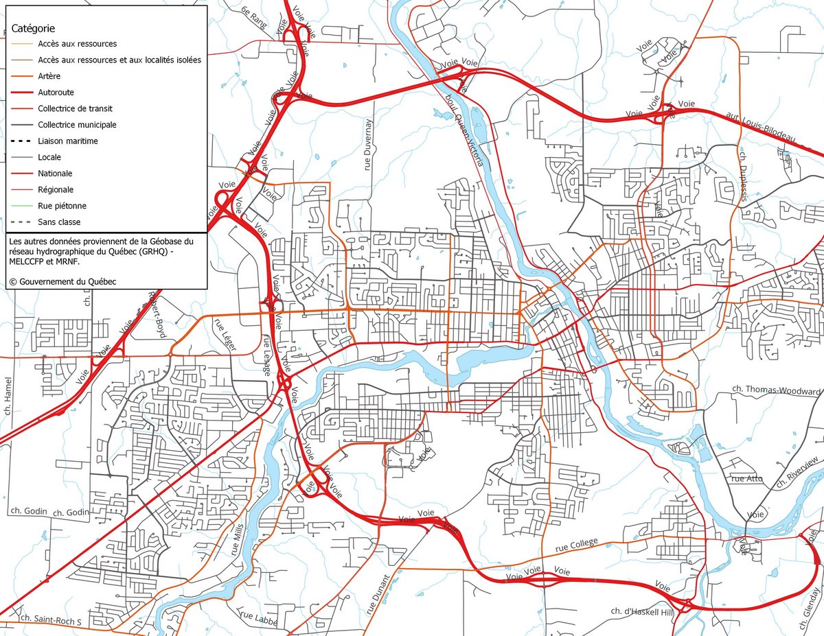 Adresses Québec est une géobase issue d'un partenariat gouvernemental et d'une collaboration avec le milieu municipal. Constituée grâce à l'expertise et les données de mission gouvernementale des partenaires d'Adresses Québec, elle est exhaustive, actuelle, riche et fiable. Adresses Québec offre, pour l'ensemble du territoire québécois, un réseau routier complet comprenant les odonymes ainsi que d'autres attributs variant selon le produit. La version de base, AQréseau, comprend le réseau routier québécois et la classification routière. Elle peut être téléchargée gratuitement. La version AQréseau+ peut également être téléchargée gratuitement. En plus du réseau routier, elle comprend les chemins forestiers, les routes d'accès au territoire, les pistes cyclables de la Route Verte, les liaisons maritimes et les chemins de fer. Tous les autres produits d'Adresses Québec sont disponibles sur demande.