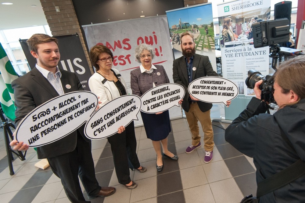 Au sein de la communauté de l’Université de Sherbrooke, étudiantes et étudiants ont conjugué leurs efforts avec les membres du personnel pour mettre en place des outils et des activités de sensibilisation, de prévention et de soutien. Un site Web est maintenant accessible à l’adresse USherbrooke.ca/sansouicestnon. On y trouve notamment des références et des ressources pour aider les personnes victimes ou témoins de violences à caractère sexuel. Également, à des fins de sensibilisation et de prévention, le site présente des explications sur la notion de consentement.