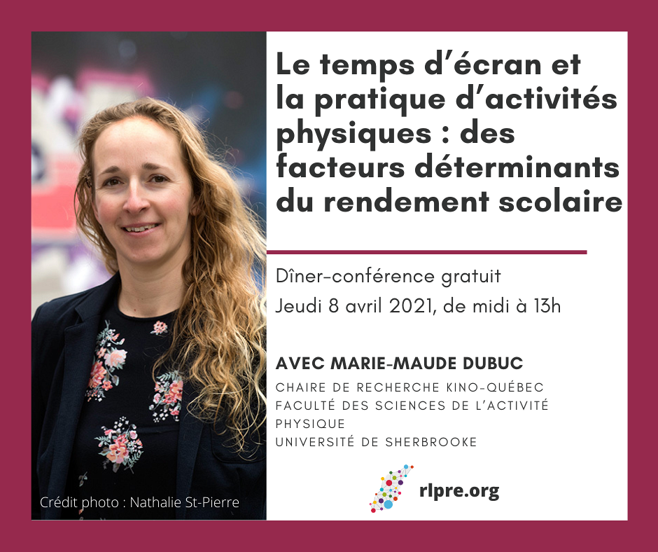 Le temps d’écran et la pratique d’activités physiques : des facteurs déterminants du rendement scolaire. Présentation de Marie-Maude Dubuc, postdoctorante à la Chaire.