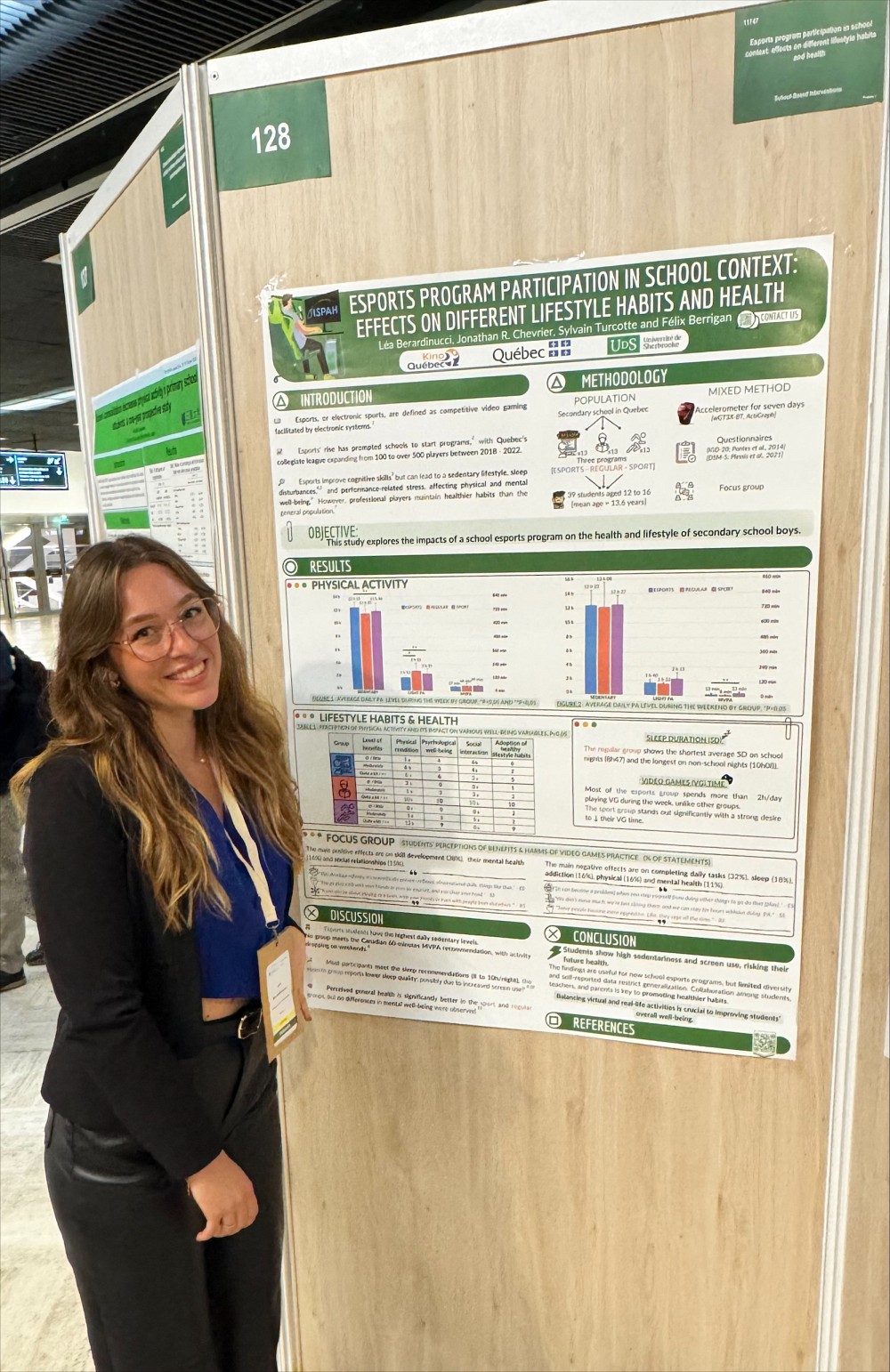 Félix Berrigan y a présenté une communication orale: Increasingopportunities to be physically active in school: longitudinal evaluation of a government measure tandis que Madame Berardinucci présentait une communication par affiche intitulée: Esports program participation in schoolcontext: effects on different lifestyle habits and health.