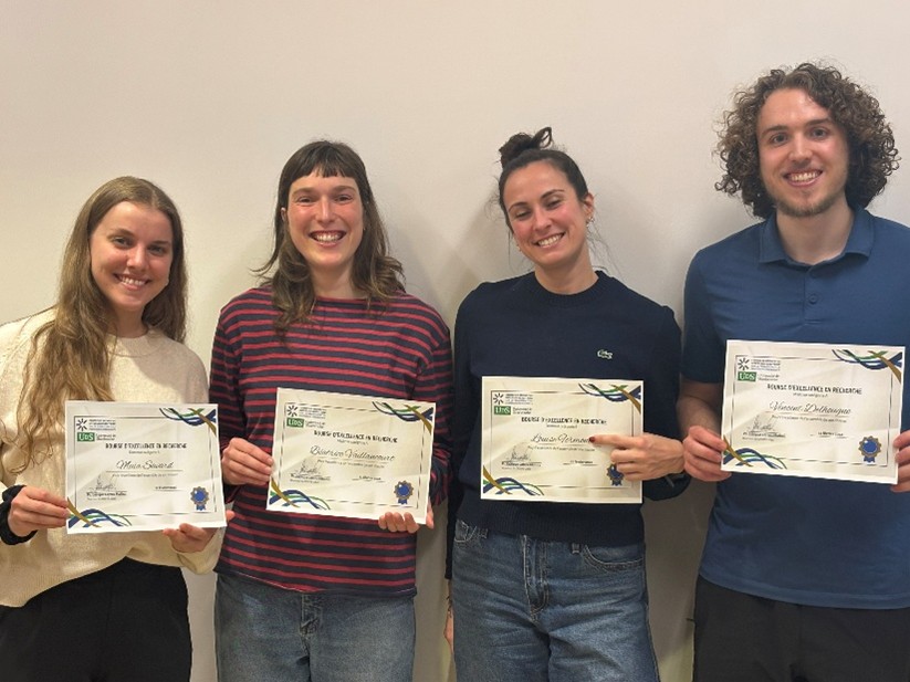 Vincent Delhougne et Béatrice Vaillancourt se sont vu octroyer une bourse au niveau de la maîtrise. Pour le doctorat, ce sont Léa Berardinucci, Louise Fermon et Maïa Rivard qui ont reçu cet honneur.