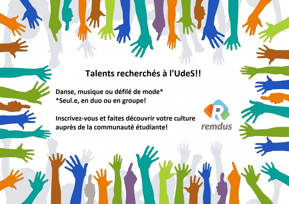 Le REMDUS est à la recherche de talents parmi les étudiantes et étudiants qui souhaiteraient offrir une performance artistique ou exposer des œuvres lors de l'événement Découverte des cultures!