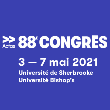 L’Association francophone pour le savoir (ACFAS) invite la communauté universitaire à leur soumettre des activités scientifiques à l’occasion de leur 88e congrès qui aura lieu à l’Université de Sherbrooke et à l’Université Bishop’s, du 3 au 7 mai 2021.