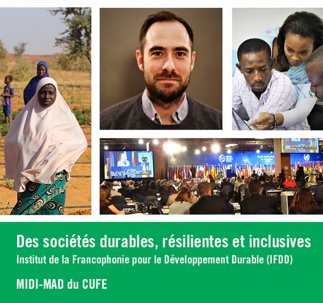 L’OIF, L’IFDD sont des acronymes qui n’évoquent rien pour vous? Cette présentation risque alors de vous en apprendre beaucoup sur ce qui se fait ici, au Québec, et ailleurs pour mettre en œuvre des actions contribuant à l’atteinte des objectifs de développement durable à l’horizon 2030.