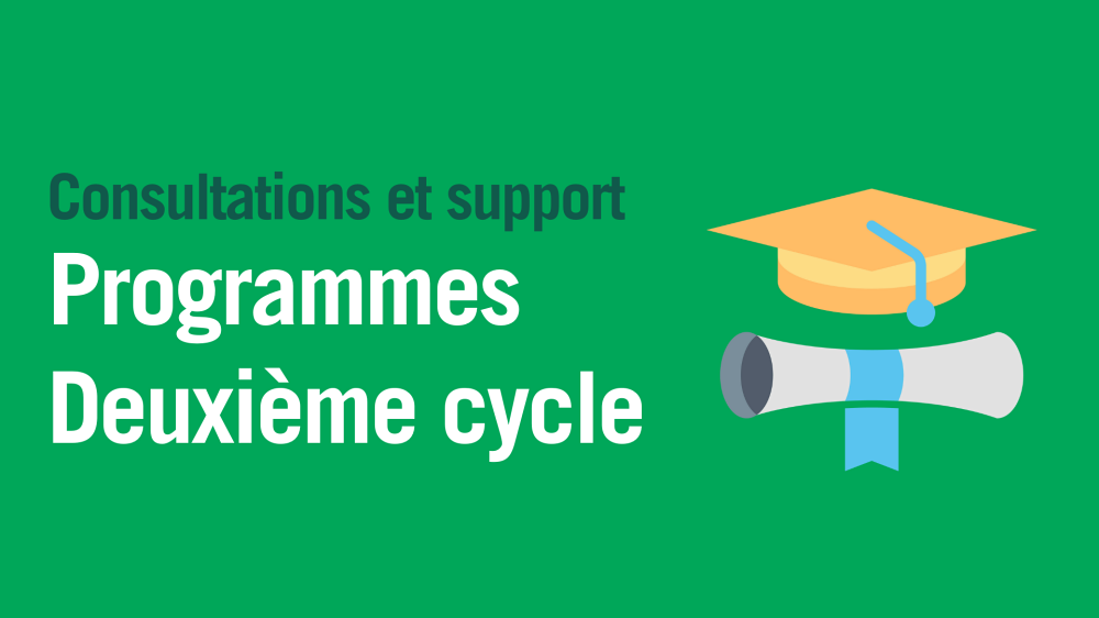 Si vous avez besoin d’information concernant les programmes de deuxième cycle, vous pouvez aussi obtenir une consultation virtuelle sans rendez-vous d’environ quinze minutes.