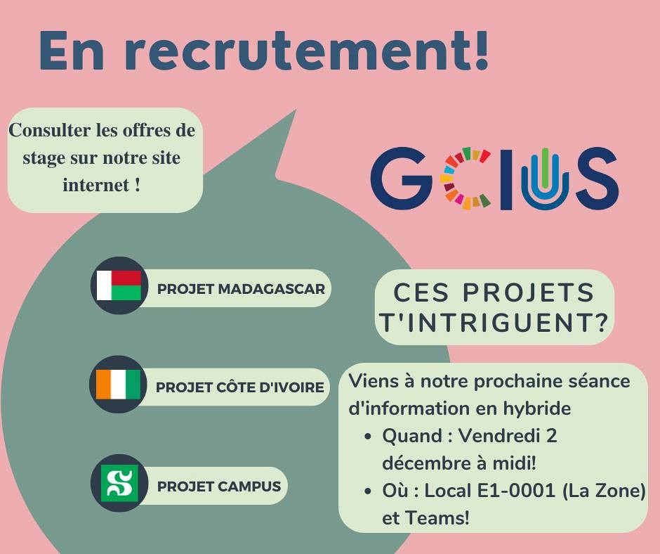 Découvrez le GCIUS lors d’une séance d’information le 2 décembre de 12 h à 13 h à la Zone (E1-0001) du pavillon de la vie étudiante et sur Teams. Apprenez-en plus sur les types d’implication possible.