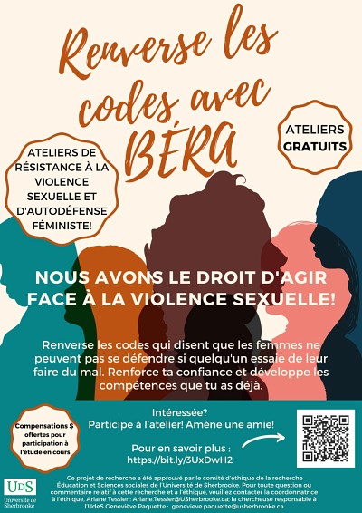 Vous êtes une femme; vous êtes une personne utilisant les pronoms féminins, et avez entre 17 et 24 ans? Vous êtes inscrite dans un programme? Cette année, le programme « Renverse les codes avec BÉRA » vous est offert dans le cadre d’un projet de recherche visant à évaluer l’implantation et les effets de ce programme en contexte francophone! Vous pouvez décider de suivre le programme en participant ou non à la recherche qui y est associée.