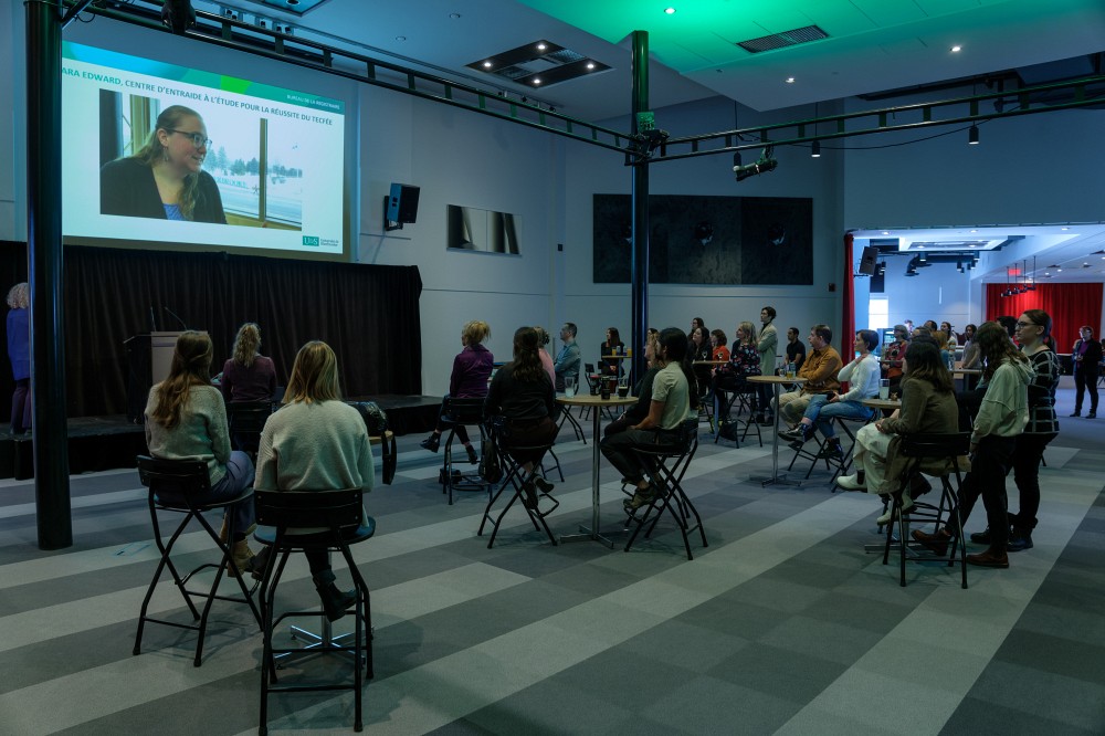 Personnes tutrices et coordonnatrices étudiantes, professionnelles en faculté et membres du personnel impliqués dans le projet se sont dernièrement rassemblés au Campus principal à Sherbrooke afin de souligner les 5 ans des centres d’entraide. La professeure Christine Hudon, vice-rectrice aux études, a offert un discours inspirant et rempli de fierté pour lancer les festivités, cédant ensuite le micro à des personnes tutrices et coordonnatrices étudiantes engagées, représentant la diversité des parcours des bénévoles. Les célébrations ont pris part dans une ambiance festive, multipliant échanges et partages, témoignant de l’esprit familial qui règne à l’UdeS.