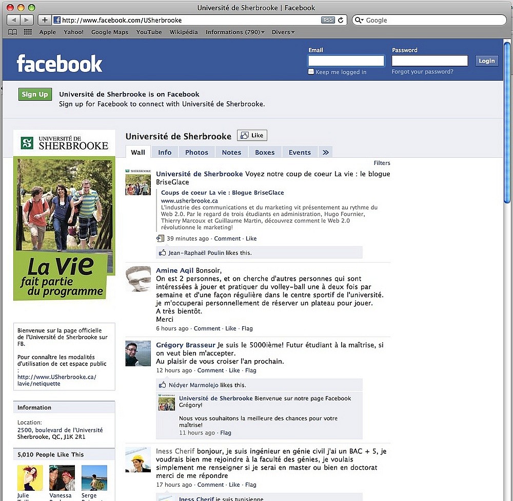 Pour devenir adepte de la page Facebook de l'UdeS, rendez-vous au www.facebook.com/USherbrooke ou cliquez sur l'icône que vous trouverez en page de d'accueil du site web de l'Université.